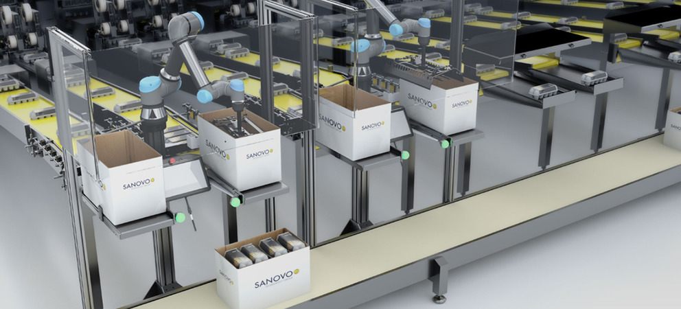 The CoFlex, an abbreviation for "Collaborative Robot and Flexibility", complements the Case Packer Twin and broadens Sanovo's offerings to customers in need of versatile end-of-lane packing solutions. Its compact design allows for the easy integration into existing production lines, optimising space usage, simplifying installation and minimising operational disruptions.
