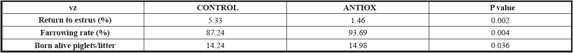In the trial presented, the sows supplemented during the weaning-to-estrus interval showed improved return to estrus and farrowing rates in the subsequent cycle. In addition, they gave birth to more piglets, with significantly more born alive piglets and less stillborn piglets (Figure 1). ![]() Figure 1: Sows average reproductive performance in the control (n=241) and cellular antioxidant (n=188) groups