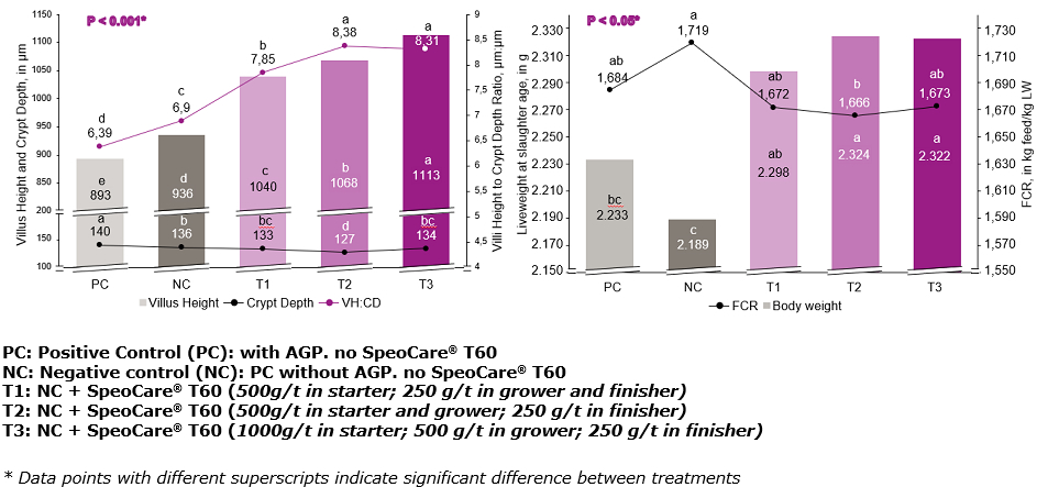 In summary, tributyrin (Speocare T60) supplementation enhances gut integrity and bird health, which consequently improves nutrient absorption and digestibility, leading to improved performance and profitability.