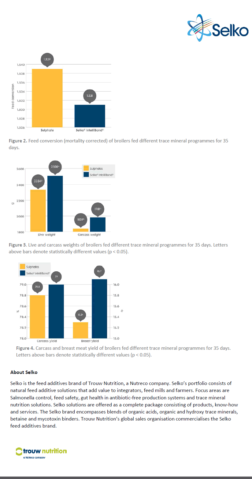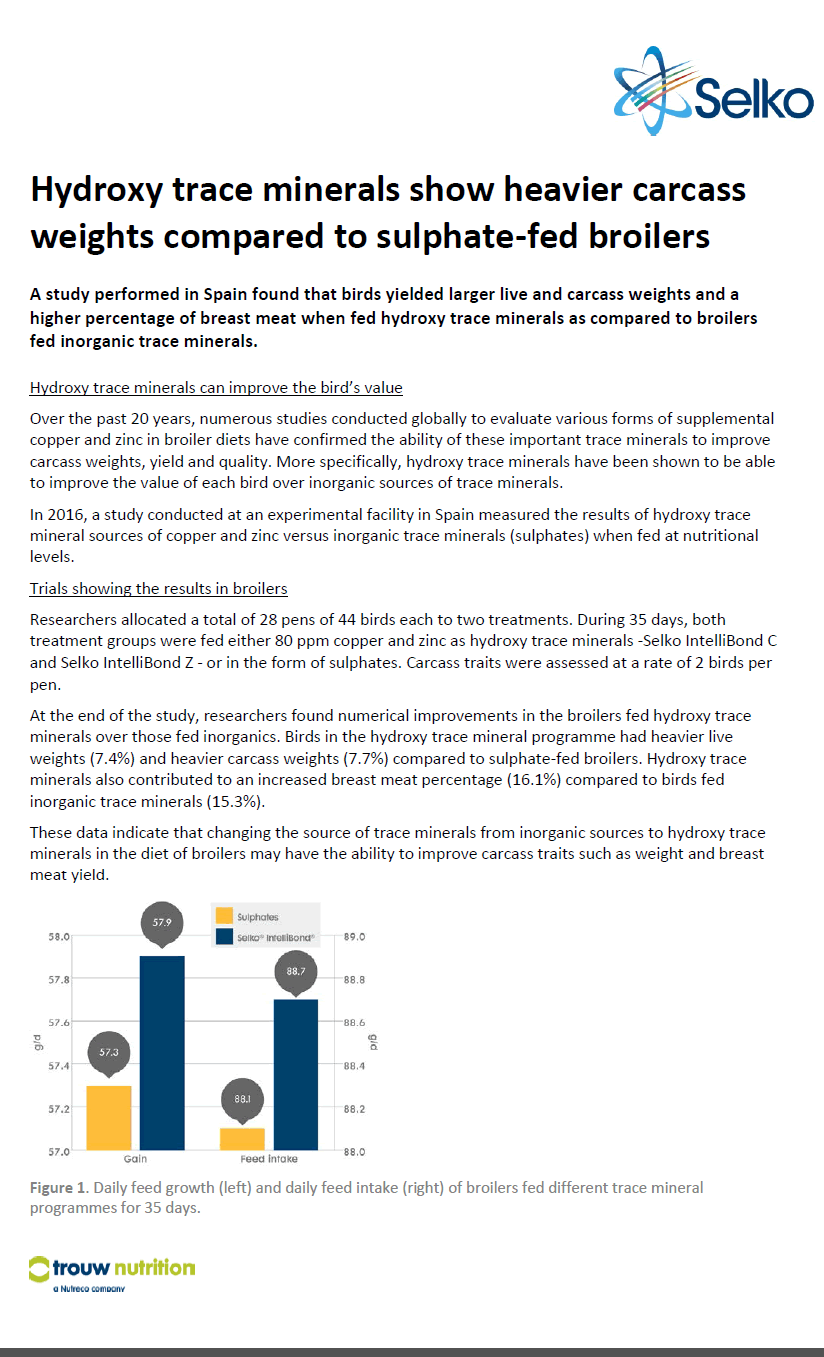 Hydroxy trace minerals show heavier carcass weights compared to sulphate-fed broilers
