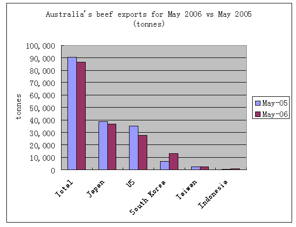 Australian Beef Exports for May 2006 (tonnes)