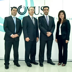 Executives gracing the opening of Novus office in the Philippines. From left: David Moreno, Novus regional marketing manager for APEC (Asia Pacific excluding China), USDA attaché David Wolf, Novus APEC regional sales director Yiannis Christodoulou and finance and operations chief Cecilia Chan |