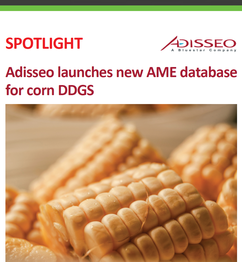 Adisseo has launched a new metabolisable energy database for corn DDGS, where the company's Precise Nutrition Evaluation (PNE) can predict its apparent metabolisable energy (AME) and digestible amino acids, based on a database built on in-vivo measurements.