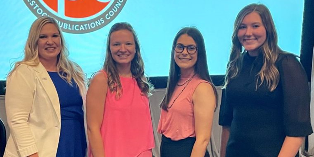 The Livestock Publications Council (LPC) Student Award Program, sponsored by Alltech, provides travel scholarships for four students to attend AMS. This year's finalists were Lydia Johnson (Iowa State University), Faye Smith (Kansas State University), Lindsey Okuley (The Ohio State University) and Sydney Garrett (Kansas State University).