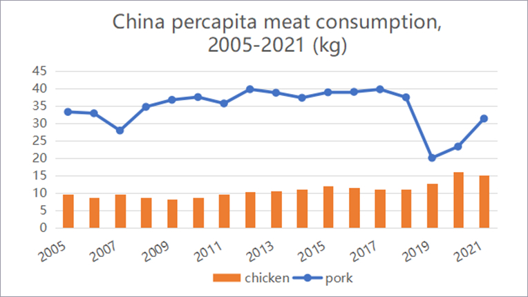 China's poultry and pork compete for market share whilst dealing with price fluctuations