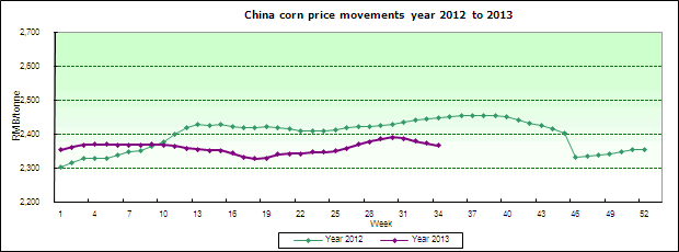 Weekly transacted prices of second-grade corn in China (Moisture content 14%) | |||||