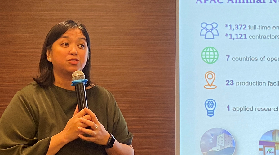 Visiel Tolentino, Regional Marketing Director, APAC Animal Nutrition, discussed and emphasized ADM's expertise beyond premium premixes and feed additives. She highlighted ADM's comprehensive technical services, designed to address complex challenges faced by farmers and feed professionals.