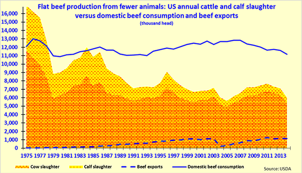 With USDA statistics implying US beef slaughter overcapacity at nearly 15% at the start of 2014 and cattle inventories at least two years away from a significant, sustained recovery, industry observers speculate that additional cattle slaughtering capacity comparable to that of the above mentioned plants could shut down over the next year.