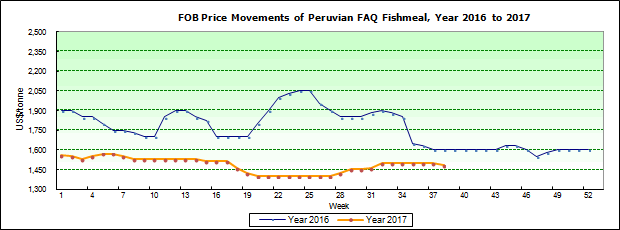 CNF prices of Peruvian prime-grade fishmeal were the range of US$1,480/tonne.