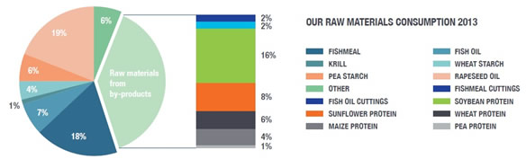 An example of BioMar's raw material consumption in 2013 from the Norwegian market. The consumption profile varies significantly from year to year and between markets.
