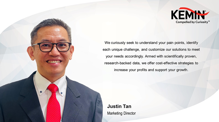 Kemin Animal Nutrition and Health - Asia Pacific sees Dr. Justin Tan, its marketing director in the region, as "instrumental in driving Kemin Asia's marketing initiatives to new heights".