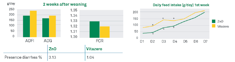 Figure 2: Results of a trial comparing the effects of ZnO and Vitazero on zootechnical performances of post-weaning pigs