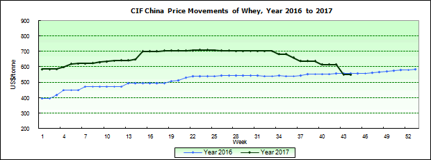 Remarks: Prices refer to CIF China price quotes (US-Dollar) of low-protein whey and are for reference only. |