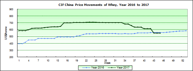 Remarks: Prices refer to CIF China price quotes (US-Dollar) of low-protein whey and are for reference only. |
