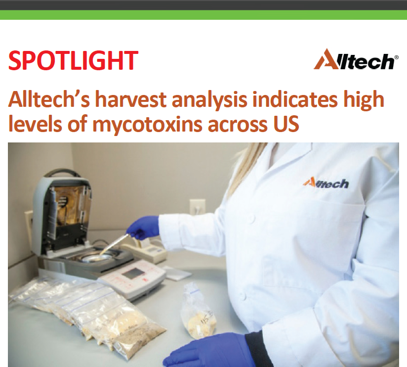 Harvest samples from across the US that have been submitted to the Alltech 37+® mycotoxin analytical services laboratory this year showed high levels of mycotoxins, particularly deoxynivalenol (DON), zearalenone, fusaric acid, fumonisin and HT-2, Alltech said.