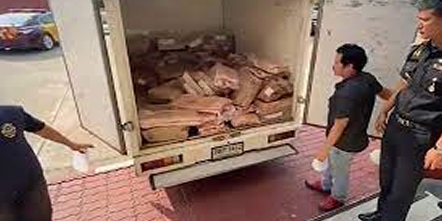 Eight tonnes of illegally transported frozen pork confiscated in Maha Sarakham, Thailand